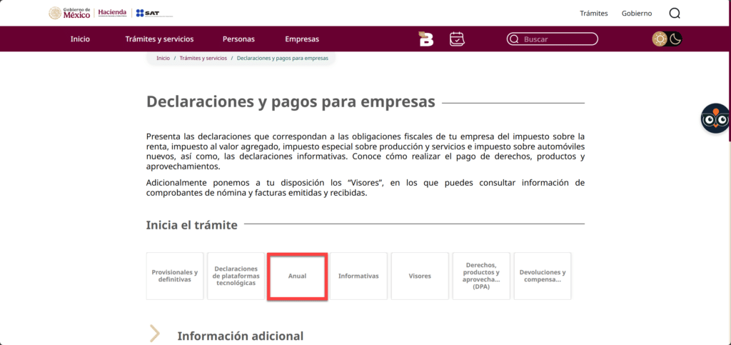 3. Selecciona: Declaraciones para personas (ISSIF Personas Físicas) o Declaraciones para empresas (ISSIF Personas Morales).
