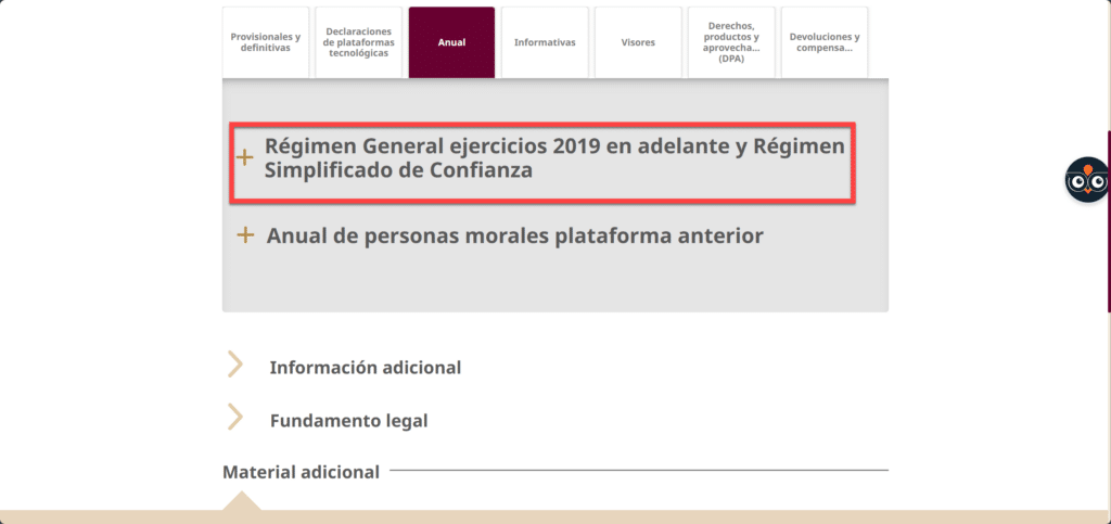 5. Selecciona el régimen correspondiente, por ejemplo, Anual de Personas Morales (o el que aplique).