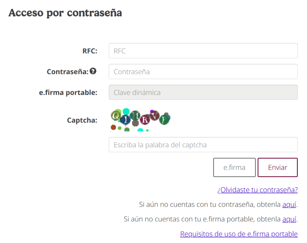 7. Accede con Contraseña o Firma electrónica.