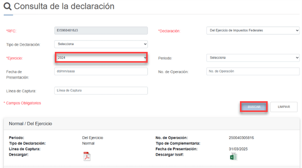 9. Elige el ejercicio, en este caso 2024, y da clic en Buscar.