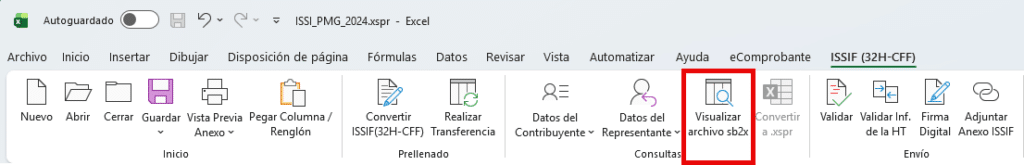 1. En la Barra de Herramientas de ISSIF (32H-CFF), se debe hacer clic en la opción “Visualizar archivo sb2x” y localizar en la computadora el archivo SB2X.