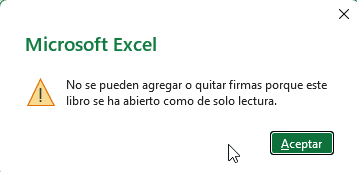 5. Una vez que hayamos dado clic en el botón “Sí“, nos aparecerá un mensaje que nos avisará la incapacidad de agregar o quitar firmas del archivo, pero permitirá abrir el documento en modo de “Solo lectura“