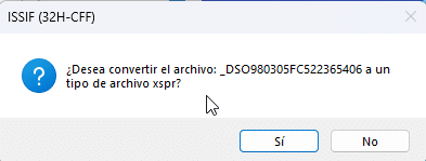 7. El sistema nos preguntará si queremos convertir el archivo “.SB2X” a “.XSPR“. Debemos dar clic a la opción “Sí”.