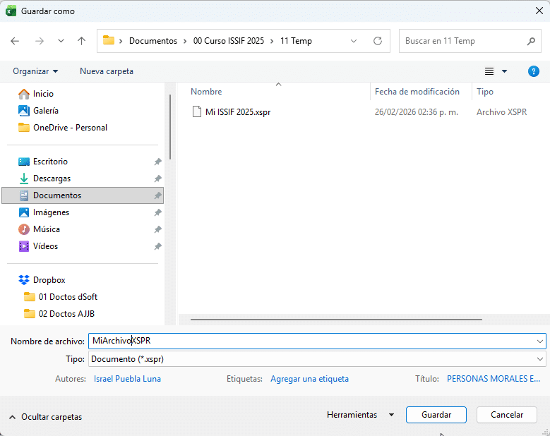 8. El sistema nos permitirá guardar el nuevo archivo “.XSPR” en una carpeta que le indiquemos al sistema.