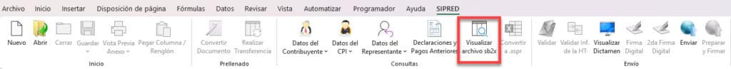 1. En la Barra de Herramientas de SIPRED, se debe hacer clic en la opción “Visualizar archivo sb2x” y localizar en la computadora el archivo SB2X.