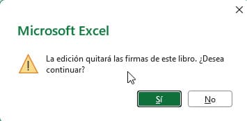 4. Si habilitamos la edición del archivo (opción “Editar de todos modos), aparecerá una ventana que nos alertará la posibilidad de quitar las firmas, si optamos por continuar, aparecerá otro mensaje.