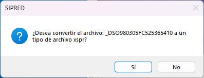 7. El sistema nos preguntará si queremos convertir el archivo “.SB2X”a “.XSPR“. Debemos dar clic a la opción“Sí”.